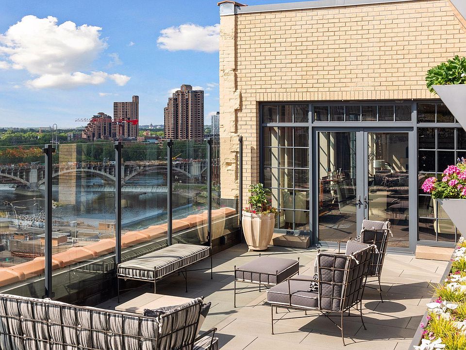 Stunning downtown Minneapolis penthouse offering unparalleled river and skyline views! Beautifully remodeled to perfection with impeccable interior design by Billy Beson. Elegant open flowing floorplan with walls of windows showcasing commanding views at every turn! Gourmet kitchen with French doors leading out to the palatial 3,000 square foot private terrace with outdoor kitchen, sitting area, sauna and outdoor shower! Masterfully crafted library with panoramic views and fireplace; spacious Primary Suite with sitting room, breathtaking river views, large walk-in closet and spa-like bath; guest suite and office. Additional features include a walk-in pantry, prep pantry, private elevator and three parking spaces! Washburn Lofts amenities include large guest community room + workout room. Walk to the Stone Arch Bridge, Guthrie Theater, Gold Medal Park and all Mill City has to offer!