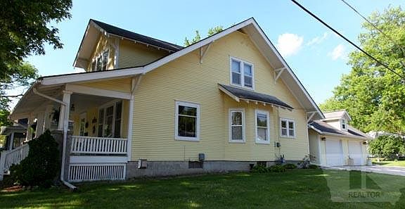 EXQUISITELY MAINTAINED, WELL_INSULATED 4-BEDROOM CRAFTSMAN HOME east-facing corner lot on quiet no thru traffic street. MUST SEE INSIDE. New double car garage 24' x 28'. New gunstock finish oak floors 2009. Original woodwork, hinges, and hardware refinished by 2009. 25' x 14' living room and same size finished basement family room with Napoleon direct vent gas stove. LISCO fiberoptic. Insulation behind cedar siding. TV and surround sound reserved. Downstairs bedroom corner armoire, basement rail, antique phone, butcher block island included. BB $173. Living room mirror, basement fridge, bookshelf reserved. Feature sheet available online.
