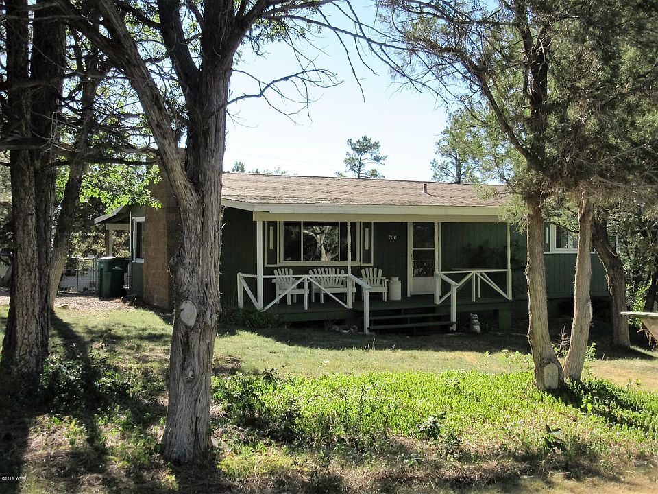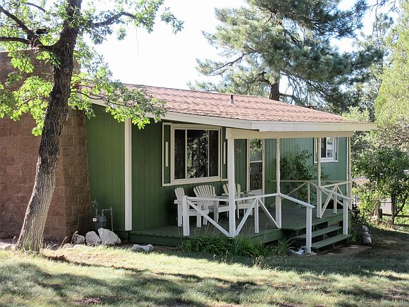 Cozy mountain cottage in the heart of Show Low. This beautiful home site features a wonderful quiet lot at the end of the street. Tall pines and mature Juniper trees with song birds all around. Two lovely covered porches for relaxing and enjoying the beautiful outdoors. The home features a large open living room with the focal point fireplace with insert. Two spacious bedrooms each with their own bath make for 2 master suites. This home has been loved and cared for over the years and is bright, clean and cheery. The back yard is fenced for the furry friends and also features a garden area. There is a enclosed workshop storage area. Air conditioning, forced air furnace and a watering system for the lawn. Great starter or retirement home! Move in ready!