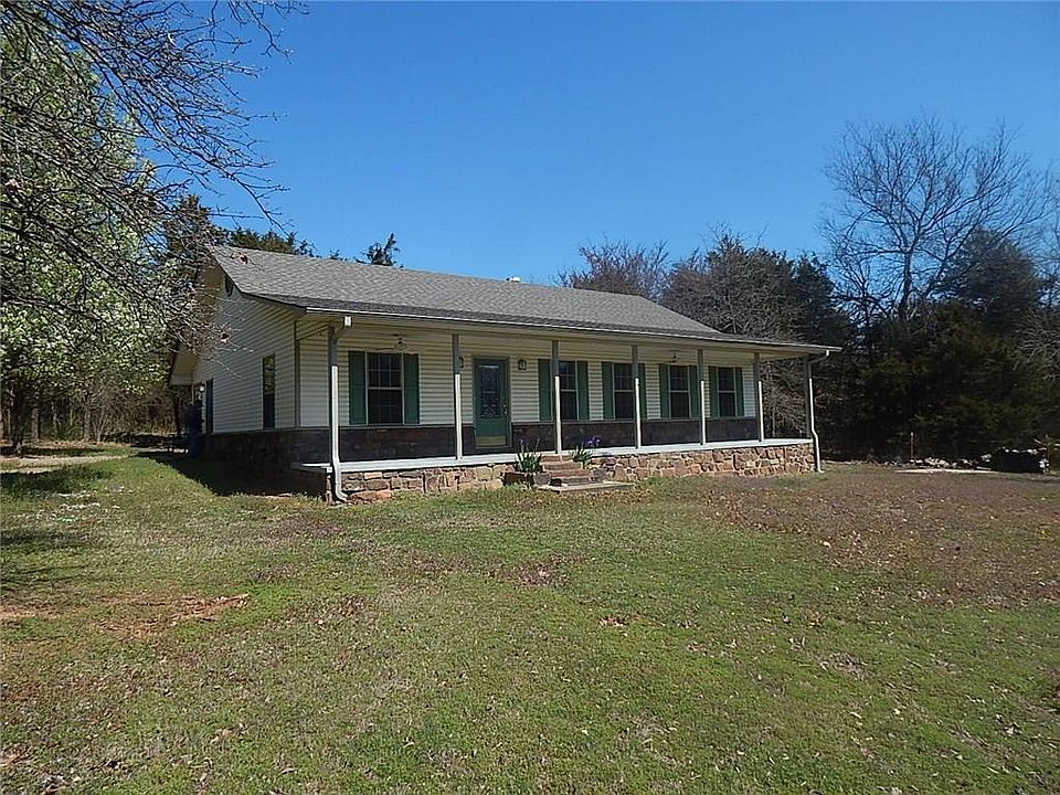 Home is vacant and very well kept, features split floor plan, large open living room with rock hearth and wood stove. New interior paint, built-in kitchen ceiling fans. Nice fenced 20 acres with over 660 feet of frontage along Gray Street, Large covered porch with a view. There is a large foundation in place ready to pour slab for shop building. Owner states Septic system will need to be replaced and will pay to have installed before closing. These type places are hard to find this close to Fort Smith!