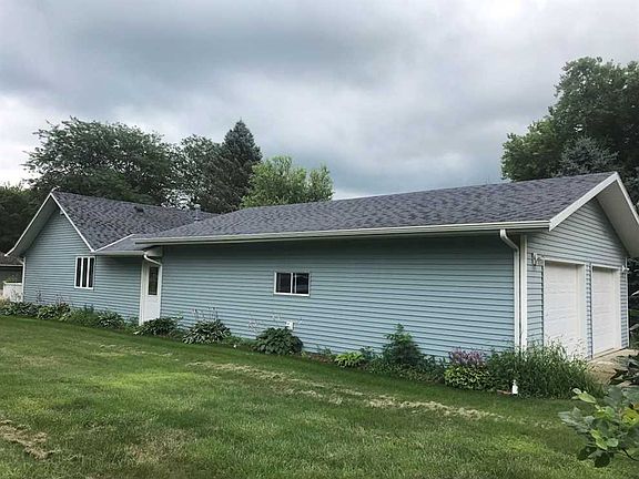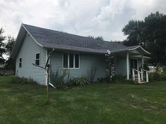 Picture yourself sitting on the front porch of this 2 bedroom 1 bath home Smaller u shape kitchen dinning room living room and main floor laundry. Breezeway to the 26x36 Insulated and heated garage with 2 overhead garage doors that were added on in 2003. Full unfinished basement gas furnace with central air gas hot water heater and hookups for washer and dryer. Newer vinyl windows throughout the house vinyl siding asphalt shingles. Home sits on a 75x142 ft corner lot with paved streets.