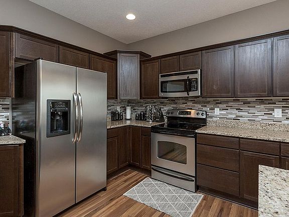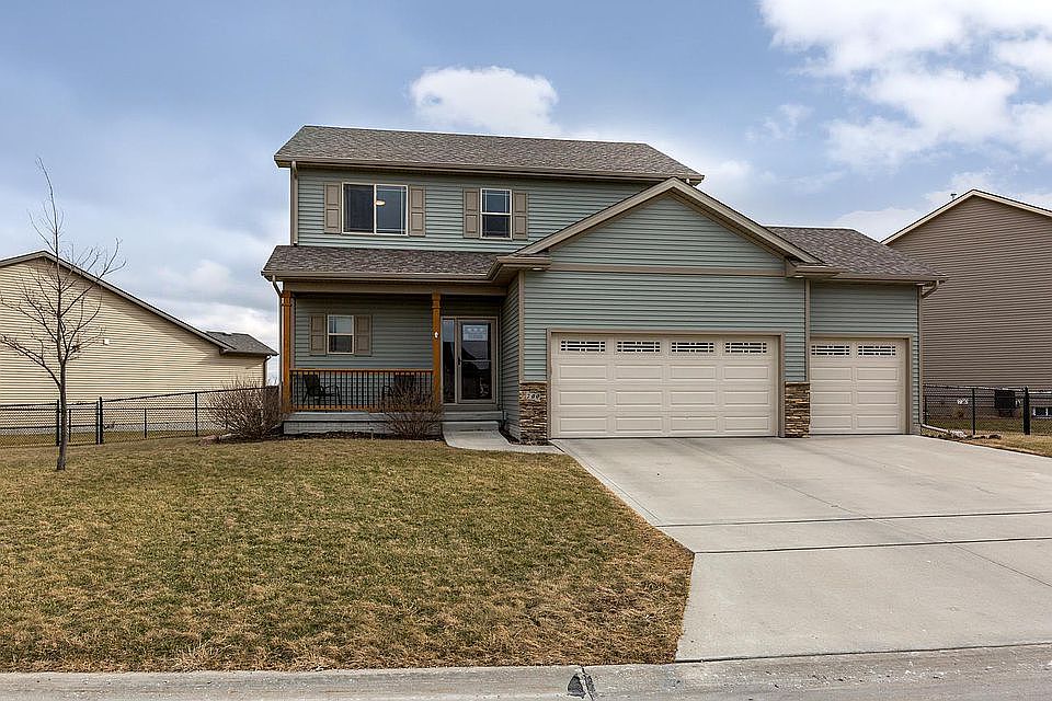 This beautiful two-story home in the Meadowlark South community includes 4 bedrooms, 3.5 bathrooms, and a 3 stall garage. Features include granite countertops in the kitchen and full baths, KitchenAid kitchen appliances, granite composite kitchen sink, stone surround gas fireplace, custom header pieces above the front and back doors, large laundry room on the 2nd floor, and the master suite includes vaulted ceilings, dual vanity in the bathroom and large walk-in closet. The tankless water heater allows for multiple appliances and showers to be run at the same time without running out of hot water. Current homeowners have made updates every year, some of which include the following: fence (2013), 12x14 deck (2014), water softener (2015), kitchen backsplash (2015), storm door (2015), new flooring in the living room and upstairs (2015/2016), fluorescent T-5 high output lighting in the garage (2016), ceiling fans in the guest bedrooms (2016), new concrete patio (2019), full basement finish (2022), new roof (2022), new siding, gutters & fascia (2023), new interior paint (2023). Come check out this family-ready home in the heart of one of the fastest-growing cities in the U.S.: Grimes, Iowa.