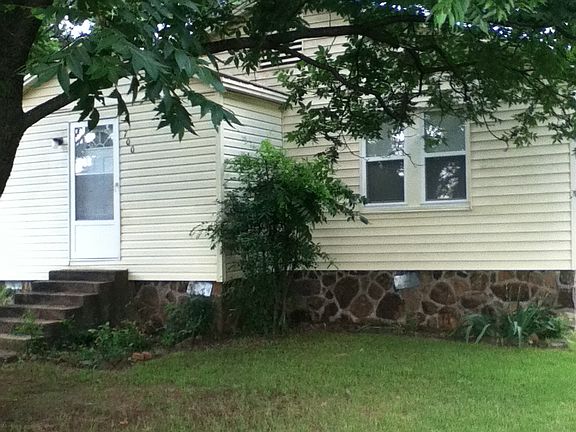 This home sits on a corner lot and has a wonderful FENCED in backyard with storm cellar! Has had some updates including newer floors , and newer windows. This home has 2 window units and a gas fireplace. Spacious kitchen / open dining area. 1 car carport. Lots of shade trees.