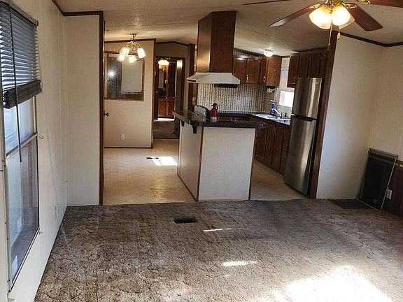 2br/2ba single wide mobile home constructed in 1994. BUYER MUST GET PARK APPROVED. 924 sq ft of living space. The sale includes refrigerator, electric stove, washer and dryer. All of the appliances are fairly new. This is a very livable trailer that needs some work. The AC compressor is not working. The roof has some damage from limbs that fell from a tree that has since been removed. The amount of work that is needed is reflected in the low price. The driveway provides parking for 2 to 3 cars. The lot rent is $475 and it includes trash and sewer.