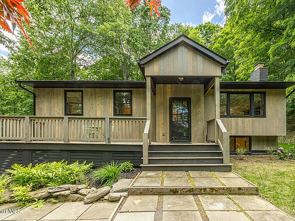 Step into tranquility with this fully renovated Mid-Century gem tucked away on a private drive. Nestled on 5 acres of wooded bliss, this home offers the perfect blend of privacy and nature. Enjoy the serene surroundings from your brand new deck and porch, where every sunset feels like a moment of pure magic. With a finished basement offering additional space for entertainment or relaxation, this home is a true sanctuary for those seeking tranquility and style. Welcome home to your peaceful retreat.