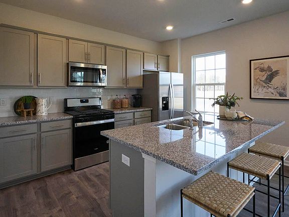 The Penwell plan is sure to please with all the important features you desire - featuring 4 bedrooms, 2.5 baths, flex space with French doors, and a loft or 4th bedroom. The main level features a modern kitchen with soft close cabinets, oversized kitchen island with granite countertops, and large walk-in pantry. The flex room with French doors just off of the foyer is ideal for a formal dining room or home office. The kitchen overlooks your spacious great room, with space between for an eat-in dining space. The Primary Suite on the second level offers a luxurious Primary Bath with private water closet, undermount dual sinks, Quartz countertops, sprawling 5' walk-in shower, and large walk-in closet. Additionally upstairs, entertain in the loft or 4th bedroom (4th bedroom in lieu of loft depending on homesite), and laundry room. Find 2 additional guest bedrooms on the second floor per plan, both with walk-in closets, which share a full guest bath with undermount dual sink vanity (Quartz counters) and tub/shower combo. Home includes stainless steel Whirlpool appliances and Home Is Connected smart home package! Ask about Main Street Stars Promotion, Builder Forward Rate Buydown