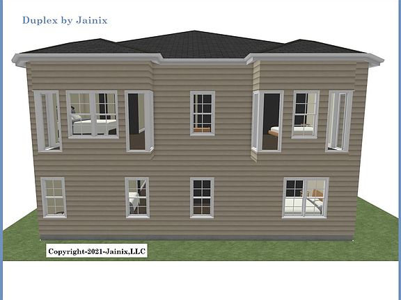 This plan has two kitchens, so it may used as one single family home or for two families with their own independent entrances. It has balcony and bay windows on the 2nd floor. The layout and fixtures are customizable. Buyer agents are welcome.