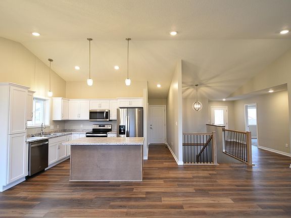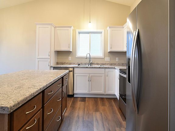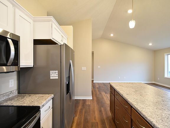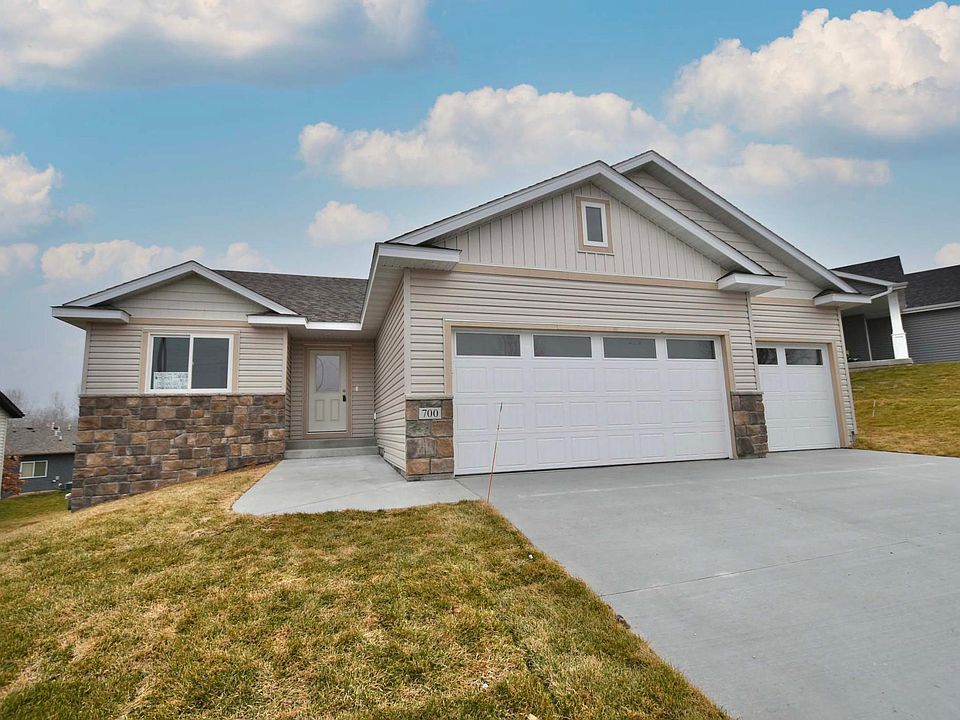 Rambler style walk out New Construction! This 2 bedroom 1 bath home features and open floor plan, main floor laundry, Walk in closet in private bedroom, lower level is unfinished but ready for you touch. 3 stall garage with brick accent this new construction is ready for you. City park located in the backyard of this home.
