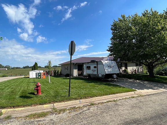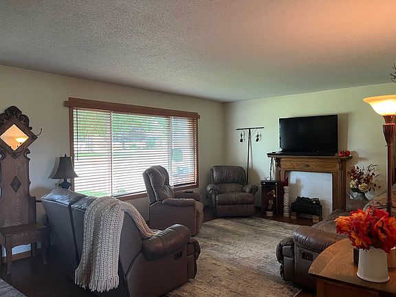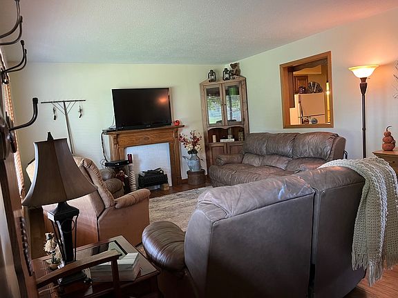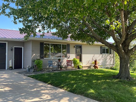 Ranch home on edge of town with newer landscape recently done in back fenced yard and many updates inside. The main floor has kitchen, dining area, living room, sunroom, 2 bedrooms and a full bath with walk-in shower and grab bars. The walk-out basement has 2 bedrooms den/bonus room, family area/rec area, full bath and great storage. The 2 car garage recently had new 8' door installed for taller vehicles. Outdoor shed. Updates in 2022 include: 8' garage door, front doors, door from garage to house, shutters, A/C and newly landscaped back yard. Main floor bath remodeled in 2019. Flooring in basement done May 2017. Flooring upstairs 2015 and some windows. Sludge pump new in 2016. Water heater May 2014. Roof 2012.