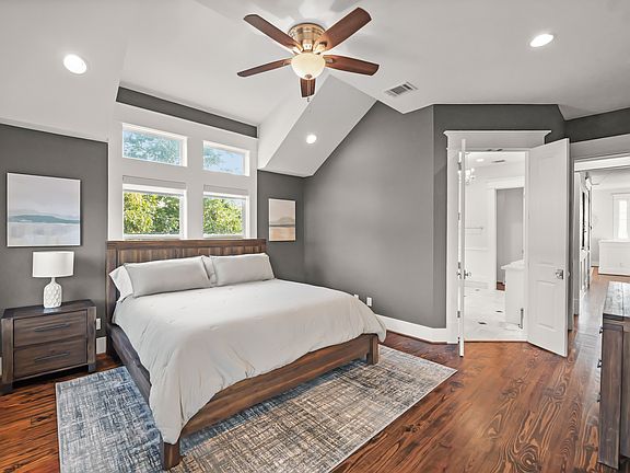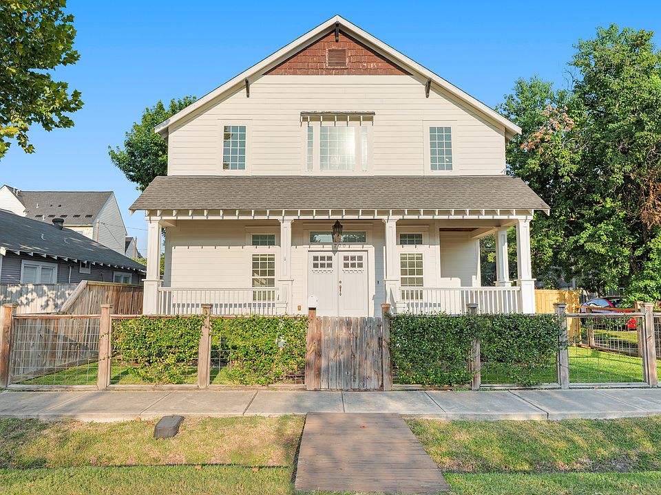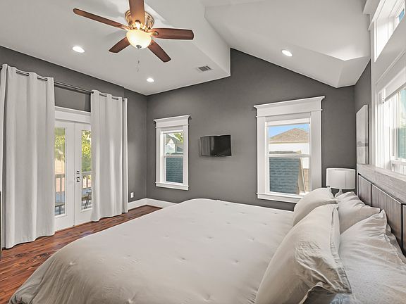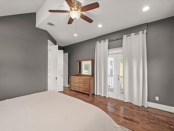 Gated driveway with large carport. Spacious back deck with outdoor furniture and an outdoor grill station. Fully stocked kitchen with ample counter, cabinet and pantry space. Includes oven, refrigerator/freezer, wine fridge, stove top and hood range. Large dining area. 85" smart TV located in living room with plenty of seating room. Office workspace. French front door and back doors. Fenced in front and back yard. Upstairs porch balcony located off primary bedroom. Bathroom has a shower with dual shower heads and a clawfoot bathtub. Primary bedroom has large walk-in closet with built-in shelving. Washer/Dryer, ironing board/iron, and garment steamer included. Two guest bedrooms with large closets and built-in shelving. Very well lit with windows all throughout the house.