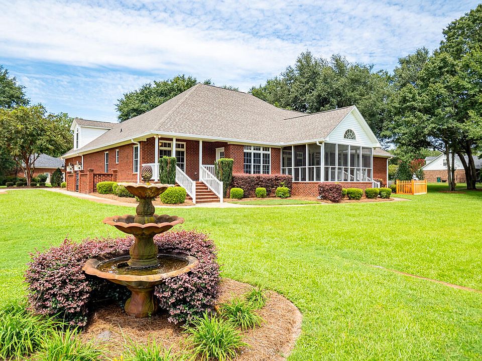 Custom built 5 bedroom, 4 bath home on over one acre in popular Lakewood Links. This home is on a double lot located on the golf course with a small pond. As you enter the home, it is open with views of the golf course from many different rooms. The Formal dining room has 13 ft ceilings. The great room has gas log fireplace, custom bookshelves, and french doors opening to a grand screened in back porch overlooking the golf course. Master bedroom has triple tray ceiling. Master bath has jetted tub, separate shower, double vanity sink, and a huge walk in closet. Kitchen has custom cabinetry, double oven, center island with smooth cooktop range. Room above garage is fifth bedroom with its own walk in closet and bathroom. Sprinkler system with well. Generac whole house generator. Plantation shutters throughout. This home has numerous custom features to make this property truly unique.