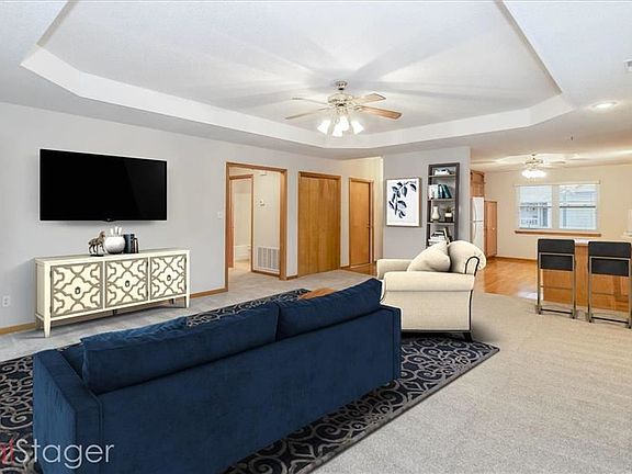Move in ready! Very desirable 55+ quiet & friendly, maintenance provided community. New Carpet. New Paint. Great front porch with epoxy flooring, sun room and back patio to enjoy a cup of coffee or where your plants can flourish! Ramp up from garage to main living. Cabinet space galore! Appliances Stay! New A/C! Clubhouse for social events & beautiful pond for fishing!