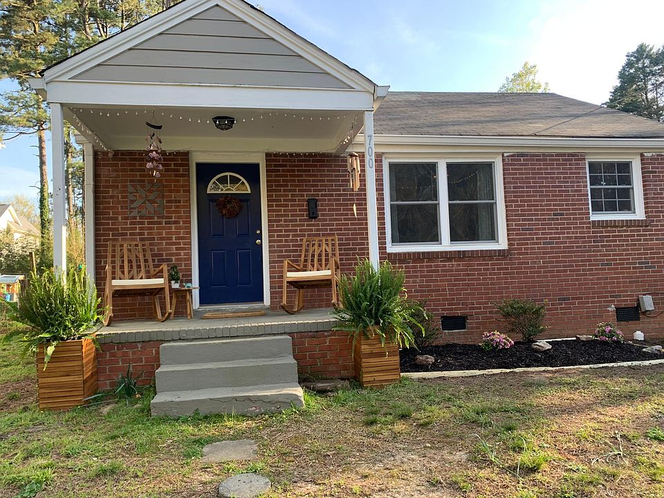 Corner lot with hardwood floors, newly painted exterior and interior. Large, fenced in backyard and two covered porches. Right next to Oakwood Dog Park. Two bedroom, 1 bath. Minutes from downtown, Person street and Five Points. Quiet neighborhood with great neighbors. Perfect starter house. Washer/Dryer, mature trees for shade. Enjoy your morning coffee on the side porch that overlooks the fenced in backyard. Shed and Carport for extra storage. New kitchen cabinets and backsplash. Text me to schedule showing (only serious inquiries). Renter pays utilities, pest control, landscaping (mowing bi-weekly)