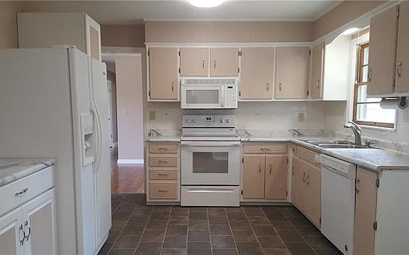 Adorable remodeled ranch. Large corner lot with fenced backyard and trees. NEWLY refurbished hardwood floors throughout living room, hallway and all three bedrooms. Cabinets with fresh paint, new counter tops. New refrigerator, stove & disposal installed. NEW second bathroom added to include shower and also washer/dryer set. NEW vinyl windows to be installed next week! New 8x8 back deck & freshly painted shutters. Backyard shed remains.