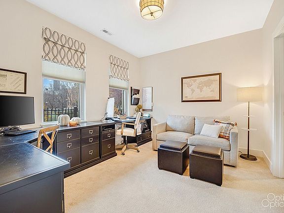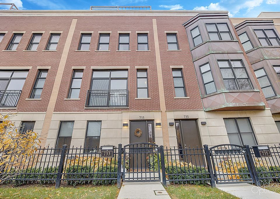 Four bedroom, Three and one half bath townhouse with spectacular skyline views. Three years new, mint condition and adorned by carefully curated materials and fixtures. Stately red brick facade opens onto a family friendly tree lined park. Four levels of understated elegance. Fabulous first floor entry with full bath and versatile bonus room. Second floor living space soaked in natural light. Warmed by a sleek linear fireplace. Hardwood floors, crisp white millwork, built in cabinetry, well defined dining area illuminated by a six light rectangle chandelier. The well appointed kitchen boasts an oversized Bianco Carrera marble island, glass globe pendants, stainless steel appliances, subway tile backsplash, white shaker cabinets adorned with matte black hardware and direct access to balcony. Retreat to the third floor sleeping quarters, primary suite with spa inspired bath, dual vanity and rainfall shower. Ascend to the fourth floor family room , laundry and private rooftop. The security and convenience of an attached two car garage. University Village adjacent to the energy of UIC, Pilsen and the West and South Loop. Offering numerous parks, athletic fields, two playgrounds, pet areas, and grounds to stroll and explore. Conveniently located to all expressways, CTA and Metra. Life is good in the village, come see for yourself. Why settle for anything less!