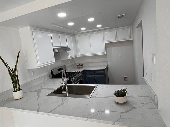 This charming, newly remodeled 3 bedroom & 3 bath, single family home is located on a private street in Azusa. Featuring new luxury vinyl flooring, new carpets, beautiful new kitchen with quartz counter tops and a new stainless steel sink and fixtures, new stainless steel 5 burner stove and hood. The large master bedroom features vaulted ceilings with plenty of closet space, private en suite updated with quartz and glazed tile/tub. There is an inside laundry room that leads to an attached 2 car garage with 2 additional assigned parking spots, built-in garage shelving and workbench. New roof and new exterior/interior paint. Extra bonus; Central heat and A/C, double pane windows, storage space galore, private patio and plenty of outdoor yard space to enjoy a peek-a-boo view of the mountains. New fencing and landscaping around the backyard and side yards are currently in the works. Move in ready!
