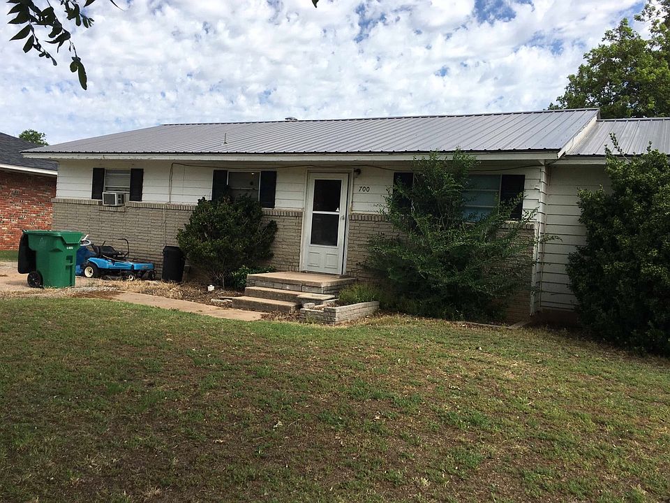 Must see! This cute, spacious home is larger than it seems! There are four bedrooms, with the option of a fifth bedroom or office, two bathrooms, two living areas, fireplace, covered porch, storage building and sits on a large corner lot. The 320 sqft. garage was converted into an additional living area with a freestanding fireplace. Storm shelter accessible from inside the home. Some items will remain with home.