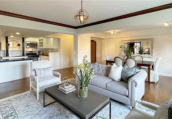 Beautiful Historic Building on The Country Club Plaza. One of the few 2 bedroom 2 bath in the building. Charming living spaces, open, light, bright and updated. Windows in every room (windows are new), large kitchen is open to living room, dining room and nook. There is also an East facing sun room for home office or sitting room off 2nd bedroom. Unobstructed eastern view of the Plaza architecture, evening and Christmas lights. Secured building ready to move in and enjoy. Please note the crown moldings, hardwood floors, in-unit appliances and washer/dryer. Steps away from the shops, restaurants, and all the Plaza has to offer.