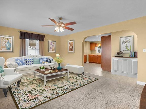 This charming 1.5 story boasts comfort and convenience at every turn! The main floor has a warm and inviting living room and the updated eat-in kitchen features upgraded cabinetry, countertops, sink, breakfast bar, stainless appliances that stay, ceramic tile and more! There are three bedrooms with one of the bedrooms currently being used as a main floor laundry with washer and dryer to stay! The hall bath features an expanded shower with seat. The lower level is partially finished and features another full bath with an additional laundry hook-up option. Owners have done an excellent job of updating and maintaining the property! Some additional updates included new roof, added insulation in the attic, newer siding, windows, storm doors, new water heater and much more! The fenced-in backyard is an added bonus along with deck and storage shed that makes the perfect workshop area! With its blend of modern updates and cozy charm, this home is truly a must-see!