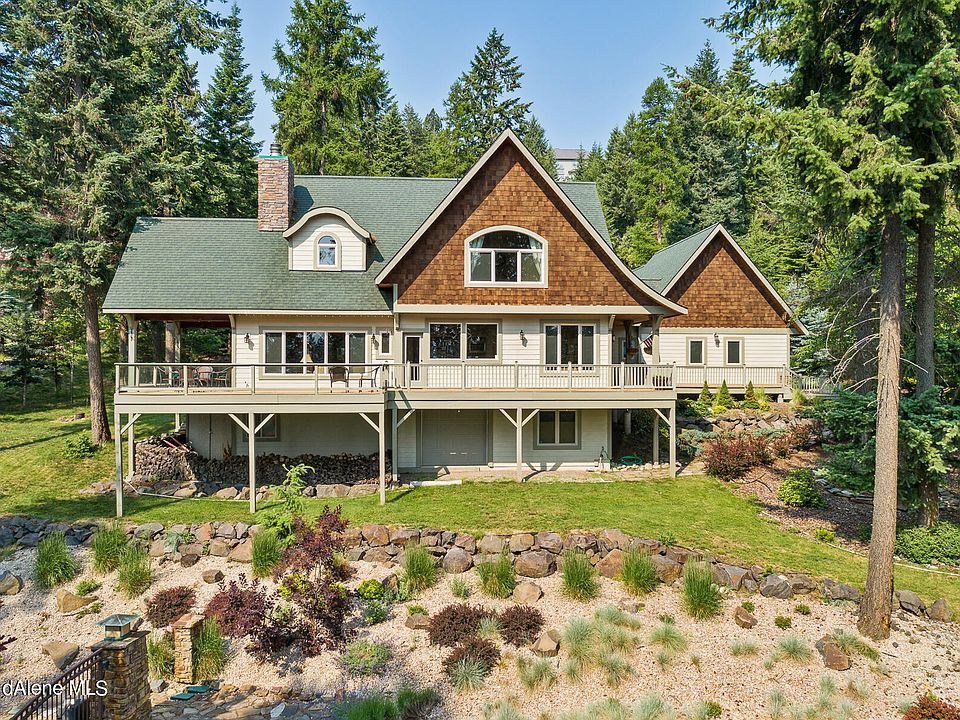 Welcome to this exquisite craftsman home, a true masterpiece of design and craftsmanship. Immerse yourself in the unparalleled attention to detail and fine craftsmanship that defines this home. From the custom roof flair to the unique rounded ceilings and exposed beamed ceilings, every corner of this residence showcases the highest level of artisanal skill. Experience the open and airy feel of the combined kitchen, dining, and living area, designed to maximize space and enhance the flow of natural light throughout. Breathtaking views from a private gated community overlooking Coeur d'Alene Lake, this home offers panoramic vistas that will leave you in awe, creating a serene and picturesque backdrop for everyday living. For the handy and creative individuals, a basement workshop with a convenient roll-up garage door is ready to accommodate your projects and hobbies, providing a space that is both practical and versatile. Take advantage of being able to purchase a membership for a 25 ft. boat slip, allowing you explore the beauty of Coeur d'Alene Lake at your leisure, indulging in unforgettable boating experiences and creating cherished memories.