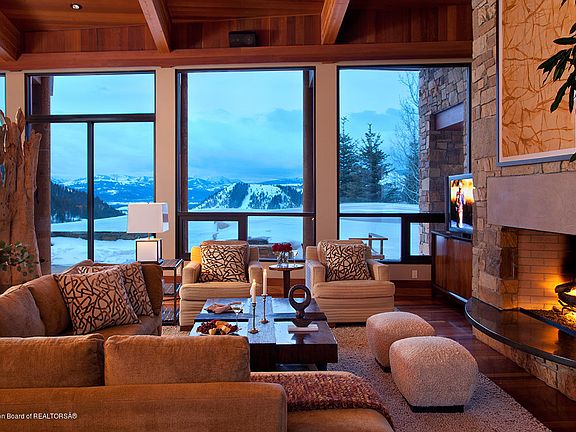 Tranquil, gorgeous, inspiring...Ranch View Lodge is your quiet retreat from the noise of the world. Adjacent to Amangani Resort overlooking Jackson Hole, this spacious five bedroom, 5-1/2 bath home is a study in harmony and simplicity. Contemporary lines, quiet interiors, and natural materials echo the mountain spires, grassy meadows, and changing sky out the windows. Each room has direct access to the outdoors. The 1,600 square foot patio with fire pit and stone-clad hot tub is the perfect gathering place for sunset and star gazing. The kitchen invites chefs, and entertaining is easy with a breakfast bar, double range, wine refrigerator and more. Enjoy all the amenities at the exclusive Amangani Resort. Sold fully furnished and turn-key. Resort zoned; excellent rental income.