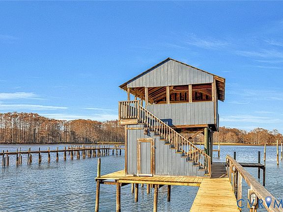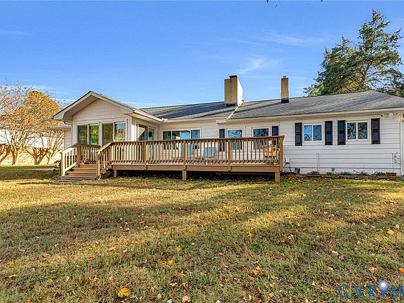 Chickahominy River front home on .7 acre site with 300' pier and elevated covered deck. Renovated, modernized, and expanded late 1960's cottage offers 1848 sq. ft. of spacious living with 2 bedrooms on either end of home, a large river view living room, sunroom, dining room, and galley kitchen. Exterior house deck, riverside deck, shoreline and yard sheds for storage compliment this custom crafted riverfront retreat, ready for fun, enjoyment, and casual living. Paved driveway and nicely maintained yard with privacy fencing provide attractive approach view from the street, and the large cypress and expansive river and distant marshes are viewed from the rear to the north and northwest.