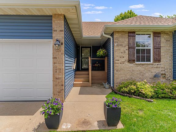 Welcome to this lovely one owner home with a walk-out basement in Ozark Mo. The home is enhanced with newer insulated siding and a new roof (May 2025)! You won't believe the size of the spacious 4-car garage with a tandem bay for boat/car or ideal for extra storage or a workshop. This charming brick and vinyl-sided ranch home is conveniently located close to shopping, restaurants and schools. Entrance to the home is from a front porch with newer composite decking. Step inside and enjoy the great room with a vaulted ceiling, a cozy gas fireplace, and gorgeous hand-scraped Acacia wood flooring that flows into the kitchen and hallway. The kitchen is both functional and stylish, offering ample cabinetry and a walk-in pantry. Located on the main floor are three bedrooms and two full bathrooms, including a spacious main bedroom ensuite with walk in closets. Downstairs, the walk-out basement offers additional living space, complete with a large great room, a laundry room, a bedroom, a full bathroom, and an office. Situated on a spacious lot, the large fenced backyard offers serene views overlooking a picturesque field. This home combines the convenience of one-level living with the added bonus of a finished basement, storage area and an outdoor storage shed. Don't miss out on this exceptional property!