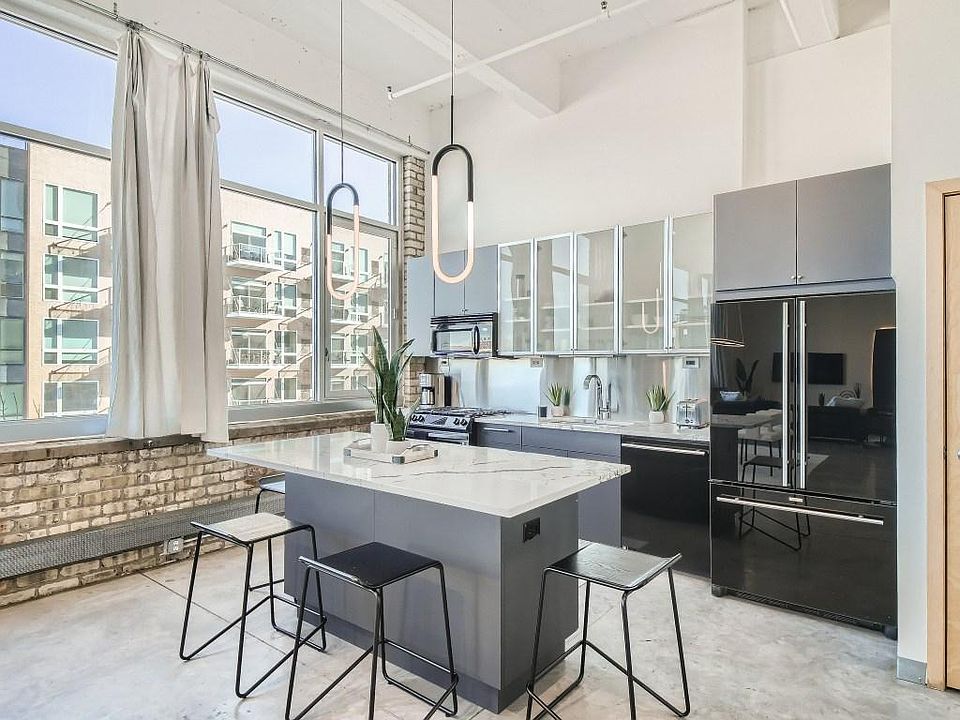 Fully furnished rental available February 1,2026. 6 month minimum rental term. Nearly everything is new! Walk in with your suitcase, order groceries, and start living your North Loop Minneapolis lifestyle. Premium Tower Loft living in the heart of the North Loop! Spacious 2 bed/2 bath condo w/ industrial modern aesthetic. Located in one of the city's most vibrant & walkable neighborhoods. Close proximity to award-winning restaurants, fashion boutiques, Mississippi Riverfront & trails. Light-rail station near Target Field, and downtown commerce just steps away! Enjoy an open-concept floor plan living/dining/kitchen w/ concrete flooring & panoramic picture windows offering amazing natural light. Handsome kitchen has updated fridge, & brand new range, a dishwasher, matte-black and glass front cabinetry & center island. Large primary suite w/ 3/4 bath & walk-in closet + custom built wardrobe wall unit. All new back-lit entertainment cabinets in living room. Second bedrm functions well as den, office or exercise. In-unit laundry, heated garage & not to be missed is the amazing shared rooftop deck with BBQ's & lounge areas.