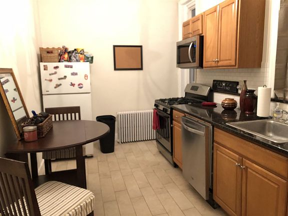 Avail Now!! Beautifully renovated one bedroom/one bath located in the heart of town, directly across bus stops to NYC/Path, shopping, restaurants, etc.. Apt has all new hardwood floors, beautiful kitchen w/ all new cabinets, countertop, stainless steel dishwasher & microwave, & nicely tiled all new bathroom. *Coin operated Washer & Dryer in basement. Heat & Hot water in included in the rent! Approx 700 sq feet. No pets allowed. Good credit report and work employment history required...Landlord must review. Certified checks for One month and a half security deposit, first months rent, and one months rent brokers fee required.