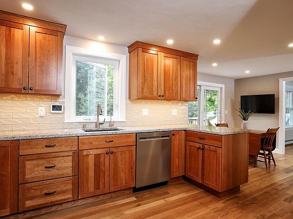 Pride of ownership shines through in this meticulously maintained one owner home in a quiet country setting. A terrific floor plan perfect for today's family living! NEW kitchen features a hardwood floor, high quality newly installed cherry cabinets, gas stove and granite counters. First floor formal dining and fireplaced living rooms both with hardwood flooring. Eat in kitchen to the deck overlooking the scenic backyard. Second floor features the master bedroom with hardwood flooring, walk in closet and full bath along, laundry with gas dryer and two other good sized bedrooms. New Harvey windows, roof and siding all installed in 2009. Natural gas heat. Walkup attic gives you storage or potential for more space. Full walkout basement, two car garage and newer big shed. 2x6 construction. A great backyard - perfect for entertaining. Open House on Thursday, Oct. 1st from 3-5 and Sunday, Oct. 4th from 12-1:30.