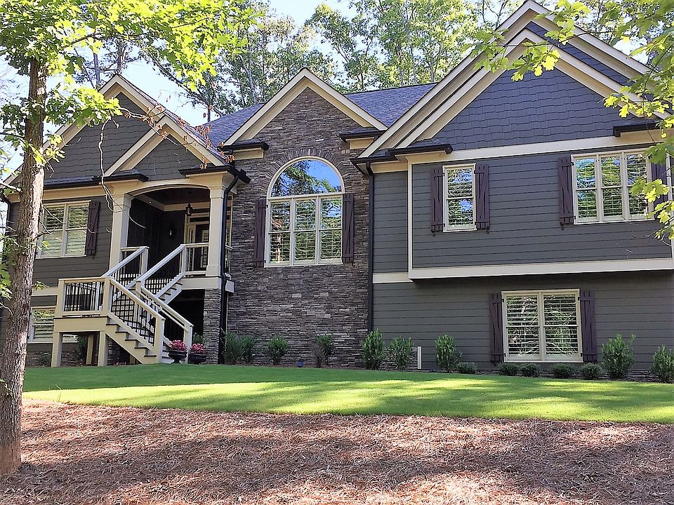 RANCH HOME WITH BASEMENT Beautiful custom craftsman style ranch home built in 2017. Situated on 1.64 wooded acre lot. This 3 bedroom, 2.5 bath home features a stunning 13 ft coffered ceiling in family room, 9 ft ceilings, open floor plan to large kitchen with granite counter tops, large island, copper farmhouse sink, with stone brick back splash, gorgeous black stainless steel appliances, hardwood floors, upgrades galore including wooden plantation shutters throughout home. Master bath with vaulted ceiling, stacked stone and tile. Unfinished basement with oversized 3 car garage. Beautiful screened porch with stacked stone fireplace and over sized deck. Located conveniently off of Hwy 20 between Canton and Cartersville. Drive by and see how beautiful this home is viewed from the street.