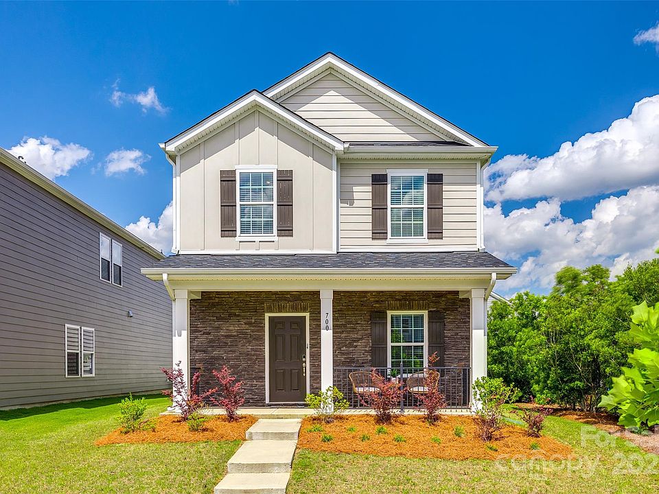 Location is key! Beautiful like new low maintenance home in convenient Preston Park. Easy walk, bike or drive - less than a mile to downtown Pineville where you'll find popular spots like Margaux's Wine, Pizza & Market + Waterbean Coffee, public library, parks & more! Open concept living w/luxury vinyl plank flooring on the main level, upgraded carpet upstairs + fresh neutral paint throughout. Spacious living & dining areas w/lots of windows for abundant natural light. Stunning gourmet kitchen w/classic white cabinets, quartz countertops, designer tile backsplash & stainless appliances - gas cooktop, double wall ovens & built in microwave. Huge center island w/room for seating, serving + prepping. Drop zone w/built in cubby storage + hooks = function & organization. Upstairs primary suite boasts a large walk in closet & primary bath w/dual sink vanity + tile shower. Convenient upstairs laundry room + loft area. No neighbor on one side - HOA maintained common area for added privacy.