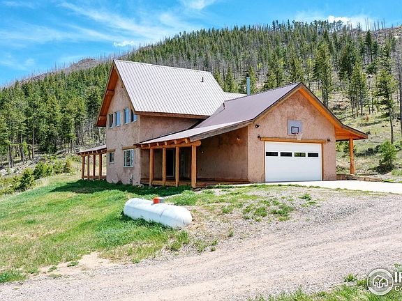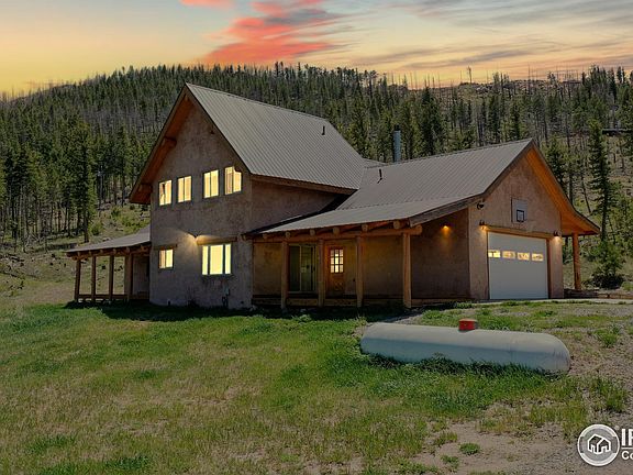 Breathtaking Mountain Retreat on 70 Acres with jaw-dropping views of Grey Rock Mountain and the valley of Bellvue. This incredible property sits just 19 miles to Downtown Fort Collins. With potential to be a true off-grid property, this home was built with energy saving construction and radiant in-floor heat! The kitchen features high end stainless appliances and knotty maple cabinets. Step into your enormous great room with soaring ceilings, bathed in light from the floor to ceiling windows, sweeping views and a convection wood stove as your second heat source. The spacious master suite includes an overlooking loft and a covered deck off the side. The 30' X 50' work shop sits above the hill and includes an upper level office or bedroom and bathroom. A rare opportunity to own your very own custom, secluded home in the mountains!