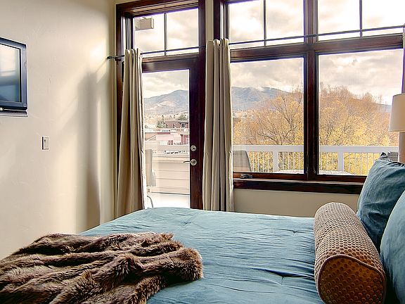 Enjoy uninterrupted ski area views and convenient downtown living from this urban style penthouse residence at Howelsen Place. Natural light floods this corner unit while views of Mt. Werner and Buff Pass command attention from the large living room windows. Breath in the fresh mountain air on the large private deck which can be accessed from the living room and master bedroom. The cozy gas fireplace in the living room is a bold focal point with its modern surround. Featuring stainless steel appliances, quartz countertops, and breakfast bar, the well-appointed kitchen opens to the dining and living room and the views beyond. A large master bedroom also captures views of the ski area and includes a private bathroom with double sinks, soaker tub, walk-in shower, and natural stone. The smaller second bedroom is perfect for youngsters with a twin over double bunk bed and views of Sleeping Giant. A second bathroom includes a shower and washer and dryer. This private condo has no shared walls with neighbors and comes with one parking space in the complex's heated garage. Conveniently located on the corner of Yampa and 7th Streets, this condo is just steps away from the Yampa River, the paved Core Trail, biking/hiking/ski trails on Howelsen Hill, and all that downtown Steamboat has to offer. Hop on the free city bus to the Steamboat Resort ski area where guests and owners of Howelsen Place enjoy a ski locker at the Gondola Ski Club. Offered fully furnished and turn-key ready, this special downtown condo makes for a wonderful and easy-living full-time residence, second home, or vacation rental.