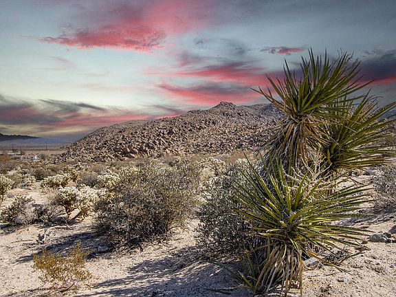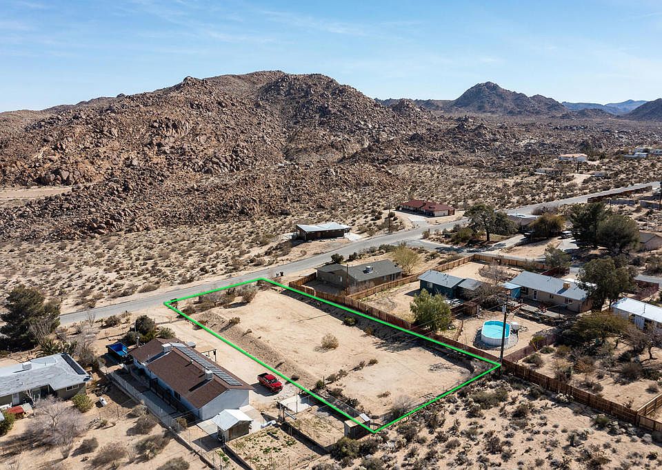 Best on market buildable lot in JT Village w/ Paid Water Meter, graded cleared lot, and Boulder views! Percolation report on file and old plans available. Ready to submit your own design with County. Owner May Carry financing! Enchanting hillside view lot in one of the hottest locations of the trendy Joshua Tree Village. Large 21,594sf that goes deep for added privacy. South of the 62 on the coveted circle streets. This parcelis is already graded saving time, money, and possible issues with protected plant species. Million dollar homes in the area. Beautiful vistas of inspiring shadowy boulders that ascend the nearby hills. Power and other utility lines are in the rear leaving an unobstructed skyline. Quiet street with pavement. Less than one mile to the JT Strip with organic restaurants, cafes, the JT Saloon, art galleries, and the Joshua Tree Farmers Market. Not far from Sunburst Park with tennis courts, basketball courts, skate park, kids splash park and a baseball diamond. 5 miles to Joshua Tree National Monument's main gate. In 2021 over 3 million tourists visited the JTNM. One of the top neighborhoods for upscale vacation rentals. More celebrities, artists, and musicians are calling JT home than ever before. Ideal, practically turn-key, lot for a high end designer home. 34 miles to Palm Springs. 128 miles to Los Angeles. For all questions on building contact the county. Contact the utilities agencies. (APN) 0603-041-16-0000. Don't Wait! - Call Now!