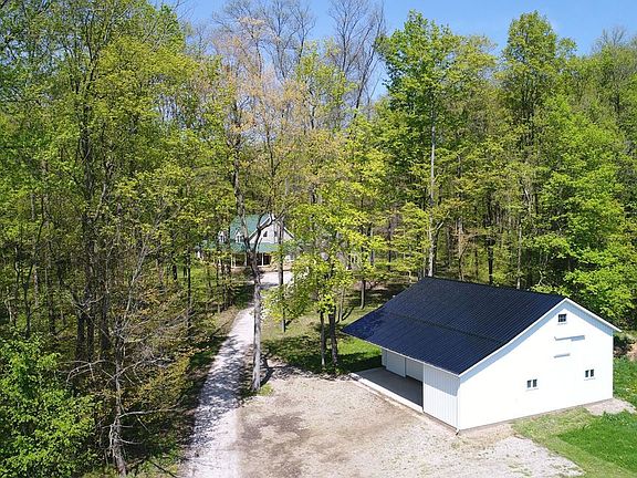 A LONG, WINDING & PRIVATE DRIVE LEADS TO THIS NATURE OR HORSE LOVER'S PARADISE! INCREDIBLY SCENIC NEARLY 9 ACRE SETTING SURROUND BY WOODS AND PASTURES. 3-5 STALL HORSE BARN WITH ADDITIONAL STORAGE AREA. CUSTOM TWO-STORY HOME WITH ~2,200+SF. VERY OPEN FLOOR PLAN HAS SOARING CEILINGS. TWO-STORY CERAMIC FOYERS OPENS TO AN EXPANSIVE TWO-STORY GREAT RM W/STONE FIREPLACE. COUNTRY-SIZED KITCHEN. 1ST FLOOR LAUNDRY. 1ST FLOOR OWNERS SUITE HAS WIC, PRIVATE SHOWER BATH & WALKS OUT TO A FLORIDA ROOM OVERLOOKING NATURE. GIANT 3+ CAR GARAGE W/DOOR TO LOFT AREA (FUTURE STUDIO) ABOVE GARAGE. VAULTED LOFT. UTILITIES HAVE ROUGHED-IN BUT ARE DISCONNECTED FOR CURRENT RESIDENT'S BELIEFS/LIFESTYLE. ADDT'L 21+ CONTIGUOUS ACRES W/ SECOND BARN AVAILABLE TO PURCHASE FOR AN EXTRA $199,900