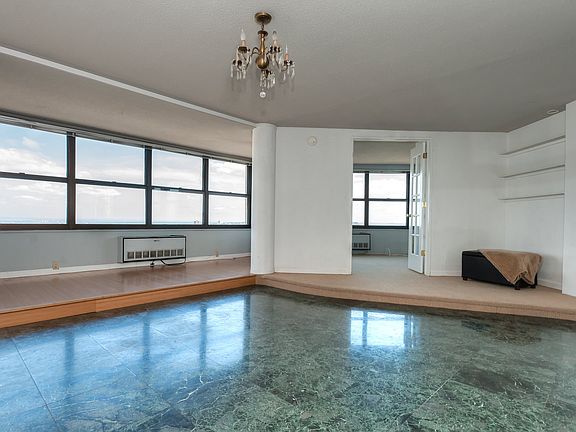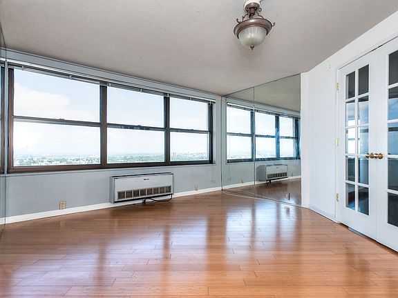 Sellers are offering a $10,000 renovation credit at closing. Seller is an architect and will also provide renovation advice for free. Amazing price for this over sized, high in the sky, sprawling apt!!!! 1546 sq ft for less than the price of 1337 sq ft (which is one rm less and a 1/2 bthrm less). When you enter this home you are greeted by an expansive living rm w/spectacular panoramic views. Sunny apt. Marble flrs in the living areas. Enlarged contemporary kitchen, wet bar & wine chiller. 2 bdrms + french doors which invite you into the den/office/3rd bdrm. Plenty of closets including a huge walk in closet + extra built in closets. Maintenance fee covers ALL utilities & the Galaxy Spa w/indoor olympic pool, outdoor pool, jacuzzi, gyms, tennis courts, club rm, game rm, saunas, steam rms, play rms. On site zen-like elevated private park, grocery store, dry cleaner, ATM, etc. 24/7 transport to NYC at our front door-20 mins travel time. 167 acre park w/farmer's market, free yoga, lake, jogging paths & more is just 10 blocks away. Indoor parking avail $120/mo. Up to 2 pets welcome. Also available for rent $3,000 w/all utilities included. This apt easily converts to a 3 bdrm.