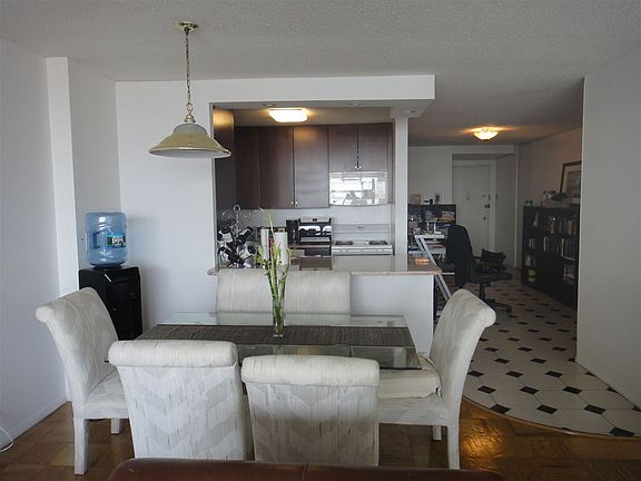 Spacious two br/two bathroom apartment on 46th floor w/views of the river and NYC. This apartment features an entrance foyer large enough to be used as an office or sitting room. Combination livingroom & diningroom plus renovated open kitchen. The bedrooms are spacious with numerous closets. Inc. in rent is heat, elec, water,sewer,use of pool,gym,24 hr doorman + many more amenities. Indoor parking is $120 extra. On site shopping, doctors,restaurants & NYC trans at door..