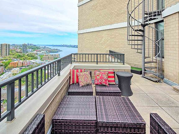 Penthouse Splendor-Soaring in the Sky-Experience Fascinating Endless views of the Hudson River, GWBridge & Beyond from the Top of the Tower! Perched on the 50th floor of Galaxy Towers, Luxury Condo. This Fabulous 3 Bedroom 3.5 Bath Duplex Penthouse is replete with a highly coveted, super-sized private Balcony Oasis. Wonderful, Eye pleasing Water Views & Picturesque Western sunsets are guaranteed to elevate your senses! Rare & Grand measuring 2300+-sq. ft. of Modern Luxury Living space on 2 Levels, perfect for relaxing, grilling & ideal entertaining. The expansive open floor-plan seamlessly connects, Living, Dining, Den/3rd Bedrm & enticing Outdoor Balcony. The sunlit Chef's Kitchen is equipped w/ abundant cabinetry, granite counters, back-splash; premium Viking range, Thermador refrigerator & plenty of prep space. Nearby is a marbled Guest 1/2 Bathroom; Walk-in-Panty+washer/dryer. Comprised of 3 generous sized, Sun-kissed Bedrooms, each with abundant closet space & 3 luxurious Carrara Marbled filled Baths, including Master Bath with your own Spa Sauna! Each room blissfully envelopes you with Magical Vistas! This Dazzling Penthouse awaits... Monthly HOA includes: All Utilities; Amenities Galore; 24hr concierge; Indoor/out Pool; Fitness; Tennis cts.;Lounge; Children's playroom; Sauna; Gardened Pavilion; Shops on site; F/T Maintenance/Management on site. Pet's welcome; Discover the Galaxy Towers Condo, nestled upon unrivaled BLVD East, a 4-mile Dream commute to NYC steps away! Surrounded by shopping, Dining, Eateries & Modern conveniences. Don't Miss Out!