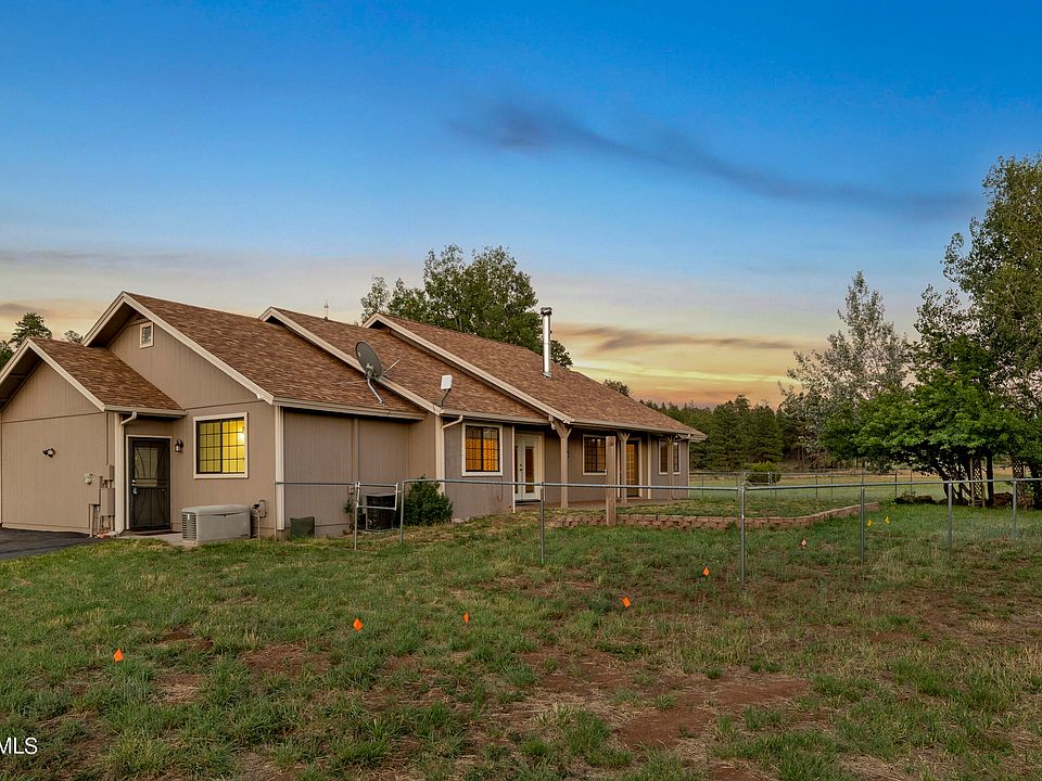 Prime horse property with a 4-bedroom ranch house nestled on 5 acres in Walnut Canyon Ranches! This fully-fenced property offers both convenience and tranquility, perfect for equestrian enthusiasts who prefer to be within city limits with easy access to nature. Enjoy city-maintained paved roads to your driveway, city water, a backup generator, APS electricity, propane, and septic. The 1968 sq ft split floorplan home features a 960 sq ft horse barn, detached workshop, and a spacious shed with serene outdoor spaces moments away from Campbell Mesa Trails, Walnut Canyon Lake, Continental Golf Club and Driving Range, Flagstaff Athletic Club East, Oakmont Restaurant, and more.