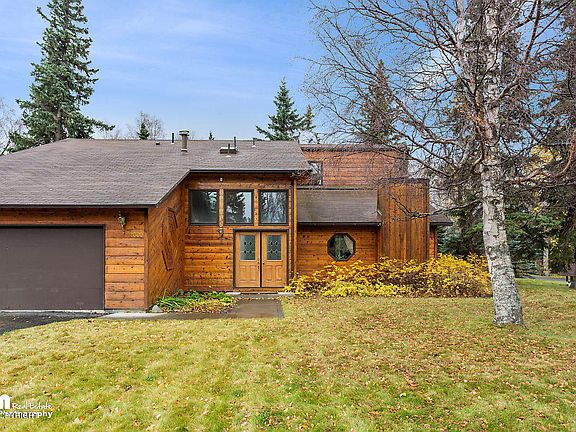 Stylishly updated Alaskan home on a south-facing 3/4 acre lot perfectly blends rustic & contemporary. Arctic entry/mudroom beckons you in - vaulted ceilings, tall windows, & a warm fireplace in the living room invite you to stay. Settle in before Christmas this year to enjoy your holiday meal in the formal dining room, big enough for any table! Updated kitchen with a Viking range, wine cooler, & granite counters & backsplashes, plus a breakfast bar & nook, leads to the den/family room. All 4 bedrooms upstairs, including the master suite with a private en suite, including a jetted tub & separate shower. The backyard is in a league of its own, with a generous tiered deck, hot tub, ample storage shed, greenhouse, & garden area, the perfect outdoor space for kiddos, pets, guests, entertainers, & green thumbs. 3 car garage with plenty of space for any hobby, & a separate RV parking area outside. A wonderful home perfect for you & yours - welcome home.