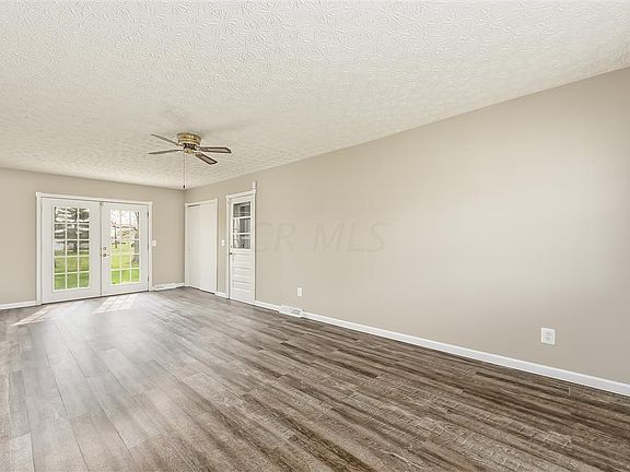 Beautifully updated ranch-style home nestled on over an acre lot in New Albany School District. Featuring a spacious living room with French doors, open kitchen with new counters, new stainless appliances, & freshly painted cabinets. Bright & open dining room and family room. Master bedroom has en-suite half bath. Two additional bedrooms and updated full bath also on main floor. Freshly painted interior & exterior, new carpet and laminate flooring throughout! Partially finished lower level with custom water filtration system. Freshly poured concrete garage floor, front porch & patio. 1.3 acre lot with mature trees and large barn.