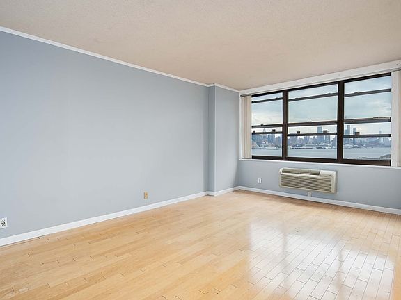 DRASTIC PRICE REDUCTION! OVER 970 SQ FT OVER LOOKING NYC/RIVER,HARD WOOD FLOORING,OPEN FLOOR PLAN FACING EAST. DESIGNER KIT, CUSTOM CABINETS AND COUNTER TOPS WITH COMPLIMENTING MOSAIC BACK SPLASH. MODERN APPLIANCES. MBR OFFERS ATTACHD BATH AND WALK IN CLOSET OVER LOOKING NYC/RIVER.INDOOR GARAGE PARKING $110/MO. MAINT INCLUDES GAS, ELEC,WATER,POOLS, TENNIS,SPA AND GYM MEMEBERSHIP.INDOOR ATTACHED MALL OFFERS DAY CARE,SALON,PHARMACY,GROCERY,RESTAURANTS,AND MORE. EASY COMMUTE TO NYC VIA BUSES, LIGHT RAIL OR FERRY. UPSCALE STORES,RESTAURANTS NEAR BY. MAKE AN OFFER.