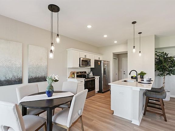 Welcome to this stunning townhome located in Southeast Des Moines! Designed with comfort and style in mind, this home features an open-concept layout on the main floor, highlighted by 9 foot ceilings, luxury vinyl plank flooring and large windows that flood the space with natural light. The spacious living area flows effortlessly into the dining space and modern kitchen, complete with quartz countertops, a pantry and included stainless steel appliances. A sliding door leads to your private patio, perfect for relaxing or entertaining. Upstairs, the expansive owners suite offers trayed ceilings, a luxurious ensuite bath with double vanities, quartz countertops, and a generous walk-in closet. Two additional bedrooms, a full bathroom and a convenient upstairs laundry room provide the space and function today's lifestyle demands. This home blends thoughtful design, modern finishes, and unbeatable value all enhanced by a 9 year tax abatement! Schedule your showing today!