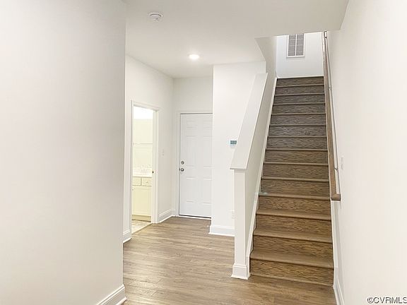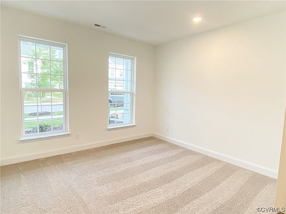 The Grove by Main Street Homes! Energy Star certified 3 story townhome offers 3 bedrooms, 3.5 baths, a rear entry 2 car garage, tankless water heater, rear deck, low maintenance vinyl siding, and a first and second floor columned front porches. The first floor includes a bedroom, full bathroom, and a coat closet. The second floor open concept offers a powder room, great room, dining room, and a rear layout gourmet kitchen complete with granite countertops, ceramic tile backsplash, stainless steel appliances, an 8’ island, and a walk-in pantry. The third floor includes a spacious primary bedroom suite with 2 walk-in closets and ensuite bathroom with a 6' Euro shower, linen closet and double bowl vanity, a guest suite with a walk-in closet and full bathroom, and a laundry room. Cosby Village amenities include a clubhouse with fitness center, a resort style pool, dog park, community garden, paved sidewalks with pocket parks, and walking trails. Cosby Village will give you low maintenance living right off Hull Street Road and Otterdale Road in a top ranked school district near shops and dining.