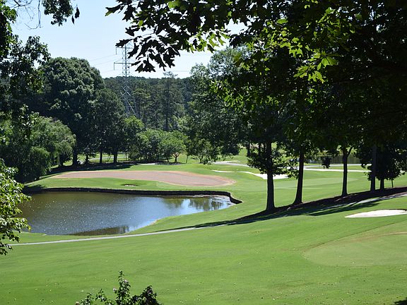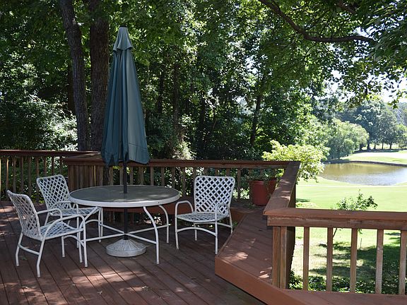Fantastic views of the 3rd, 16th holes and lake of North Ridge CC Golf Course from the 1135 sq ft deck. Living room with cathedral ceiling features a stone gas fireplace. Hardwoods in dining room, hall and den. Master bed room has sitting area with bay window, 2 large walk-in closets and en-suite bath. Paneled den has built in book cases, 2nd brick fireplace. Spacious lower level family room features 3rd fireplace, 10' wet bar. Walk out to the brick patio and rose garden. Generous closet space, cedar closet, solid wood and louvered doors. 4 designated parking spaces in the circle driveway in addition to the two car oversized garage. Hardwood trees, dogwoods, azaleas and rhododendrons surround the home. Wheel chair access to the back deck and home. Dining room Waterford chandelier and Tiffany kitchen lamp, all artwork/wall hangings do not convey. Furniture is negotiable.