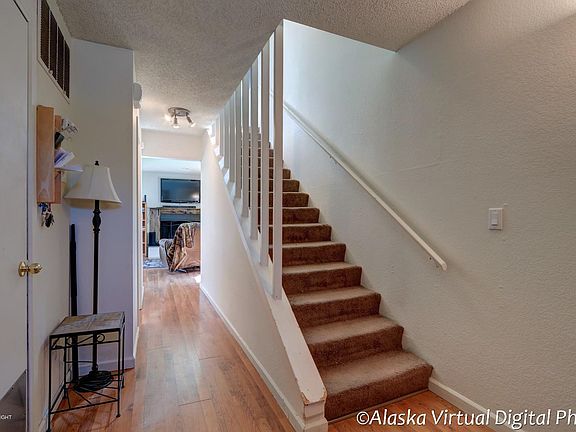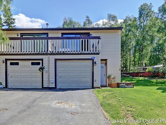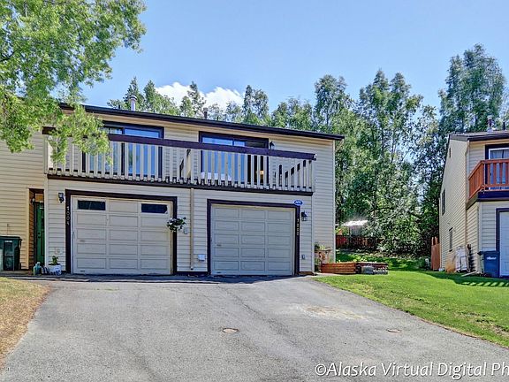 3 Bedroom 1.5BA ZLL. End unit sitting at the back of the cul-de-sac with extra space between side unit. Home features oversize Master with private deck facing west for evening enjoyment. All bedrooms on top floor, easy entry, fireplace, laminate flooring and backyard with shed. New carpet. RV Parking. Location near Baxter Bog trails, JBER, and easy commute to hospitals and college. BTV ALL.