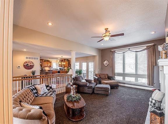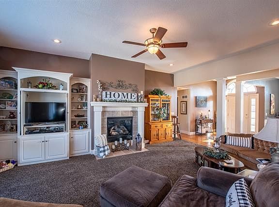 Beautiful, lightly lived in home with open floor plan. There are custom built-ins in great room, wood floors in kitchen, see through fireplace in bedroom to master bath, large utility room on main level. Finished walkout lower level family room, two bedrooms with own baths plus a non-conforming 4th bedroom and an office. Extra long drive through driveway in front of the home, great for entertaining. Fenced in backyard and sprinkler system. Newer HVAC, replaced in the last few years!