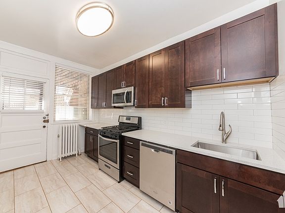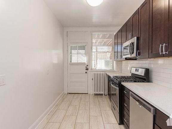 Welcome home to this recently renovated three bed/two full bath unit offering 1800 square feet of living space with room for everyone! Unit features include a sunny and spacious living room with built-in bookcases, adjoining sunroom and a decorative fireplace, a renovated kitchen with stainless steel appliances overlooking your own private deck, a dining room that accommodates large gatherings and a primary suite with a private bathroom. Shared back yard, responsive management/ maintenance, laundry and storage on-site. Photos may be of a similar unit - Presented by Fulton Grace 1 year