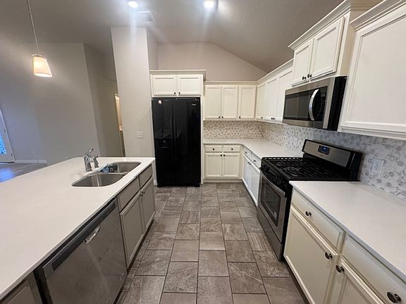 Welcome to this beautiful 4-bedroom, 2-bathroom home located in the desirable Edmond, OK. This property boasts a range of modern amenities including a fenced yard for your outdoor enjoyment, a state-of-the-art alarm system and monitoring for your peace of mind, and a storm cellar for added safety. The interior features ceramic tile and vinyl wood flooring, adding a touch of elegance to the home. The open concept further enhances the aesthetic appeal of the property. The house comes with all necessary appliances, including a full-size washer and dryer and stainless steel fridge, making everyday chores a breeze. The neighborhood offers a walking track for those who enjoy an active lifestyle. Plus, the property falls within the Edmond school district, known for its quality education. This home truly offers a blend of comfort, convenience, and luxury.
